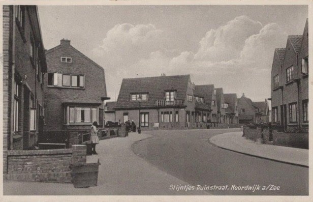 Beeld van de Stijntjes Duinstraat in Noordwijk aan Zee. De straat dankt zijn naam aan het toenmalige ‘Stijntjes Duin’, waaroverheen deze straat ooit werd aangelegd. Er zijn nog wel foto’s van dat voormalige duin (zie onder), maar de hamvraag die ik ook al eerder heb gesteld is natuurlijk: wie was Stijntje?