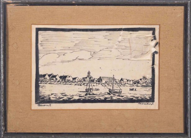 Drie beelden uit Noordwijk in houtdruk. Van een onbekende kunstenaar. De houtdrukken worden te koop aangeboden op de site van de Museumdepotshop voor de somma van € 100. Uit de boedel van het Noordwijkse gemeentehuis. Aardig bedrag voor 3 stukken van een onbekende kunstenaar, waarvan één stuk nog fiks beschadigd is ook. Schromelijk gebrek aan erfgoed-conserverend talent (maar daar zijn we wel vaker op gestuit, schreef hij vilein).