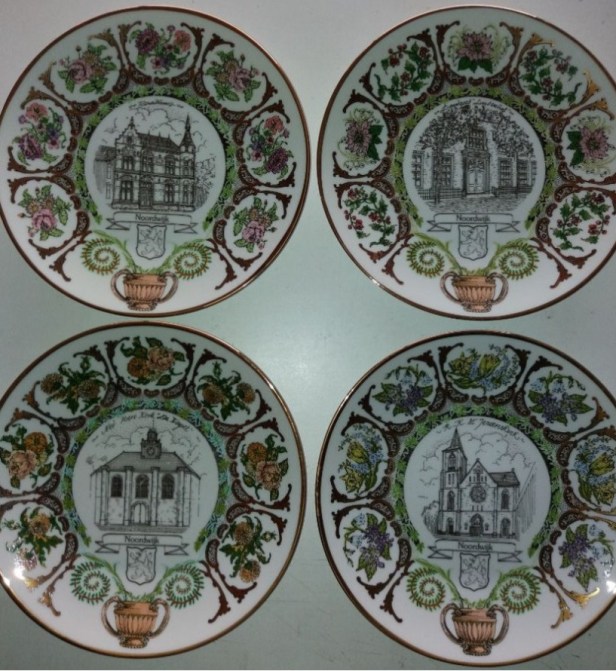 Porseleinen borden ( Limoges ) uit de Jaren 90 met afbeeldingen uit Noordwijk. Van de hand van de Vlaamse kunstenares Martina Bernhoudt. Op dezelfde manier maakte ze ook borden voor tal van Nederlandse en Vlaamse gemeenten.