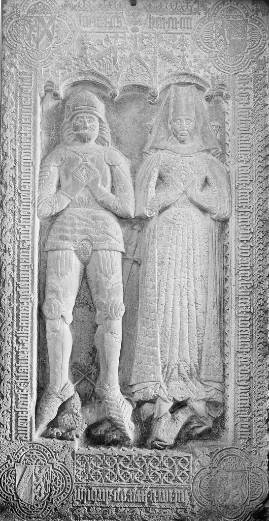 Afbeelding van de grafzerk van Jan van der Boechorst en Elisabet van Alkemade te Noordwijk. De grafzerk zelve bevindt zich in de oude Jeroenskerk en dateert van ergens uit de 16e eeuw. Hoe het allemaal in elkaar zat met die Van der Boechorsten is te ingewikkeld om hier na te vertellen. Ik verwijs gaarne naar een studie van Frans Angevaare.