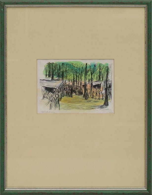 Het lijkt op een voorstudie van Max Liebermann van een schilderij dat later ‘Jahrmarkt in Noordwijk zou gaan heten. Ik maak er voor het gemak maar van ‘Kermis op het Lindenplein’, want dat is de plek (en de gebeurtenis) waar Liebermann toen mee bezig was, ik meen in 1912. Het schilderij zou er zo uit gaan zien: