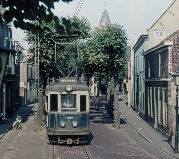 Een van de mooiere foto’s van de Blauwe Tram in Noordwijk. Deze is van de hand van Hans van Engelen en aan de eeuwigheid prijsgegeven door Phil Mulder op de onvergankelijke facebookpagina “De Oude Blauwe Tram”.
