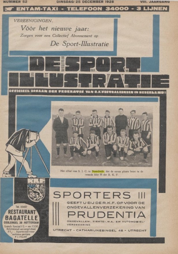 In het ‘kerstnummer’ van 1928 prijkte het eerste elftal van SJC trots op de voorplecht, zijnde de lijstaanvoerder van de Tweede Klasse H van de eerdergenoemde RKF.