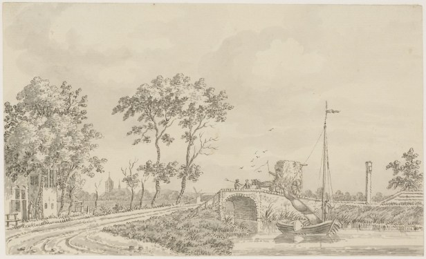 Het is een tekening van de Noordwijkerhoek met op de achtergrond de Hervormde Kerk van Noordwijk Binnen. Het gebouwtje links zou later nog een café herbergen, gerund door ene Compier. De tekening is van Dirk van der Burg: Gezicht bij Noordwijk en het bijzondere ervan is de precieze datering: op 5 september 1753 zat Dirk hier en plein air met pen en potlood te werken. De gedachte alleen al bij zoveel rust en schoonheid.